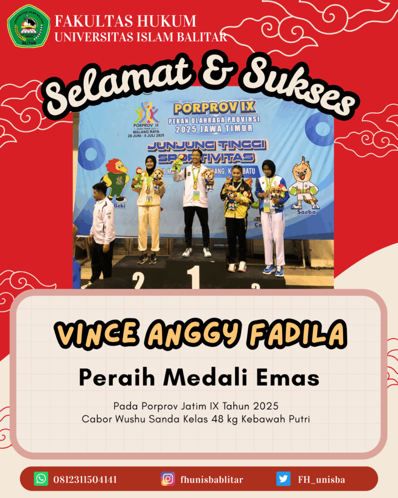 Vince Anggy Fadila, peraih medali Emas dalam Porprov Jatim IX Tahun 2025 pada cabor Wushu Sanda Kelas 48 Kg Kebawah Putri. Keep Fighting and Inspiring!